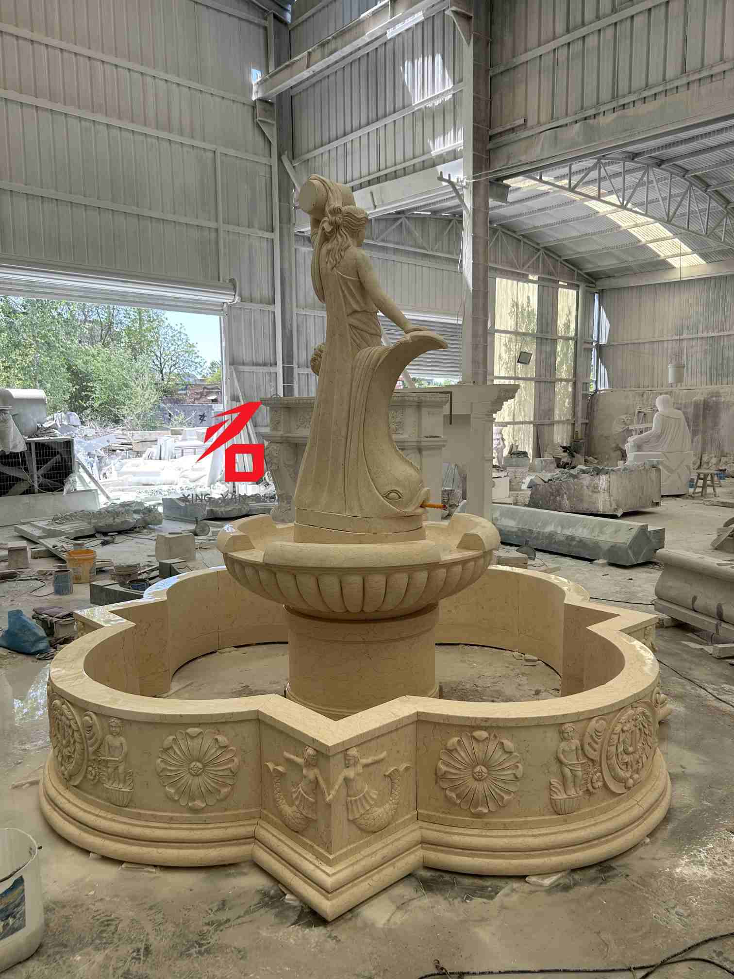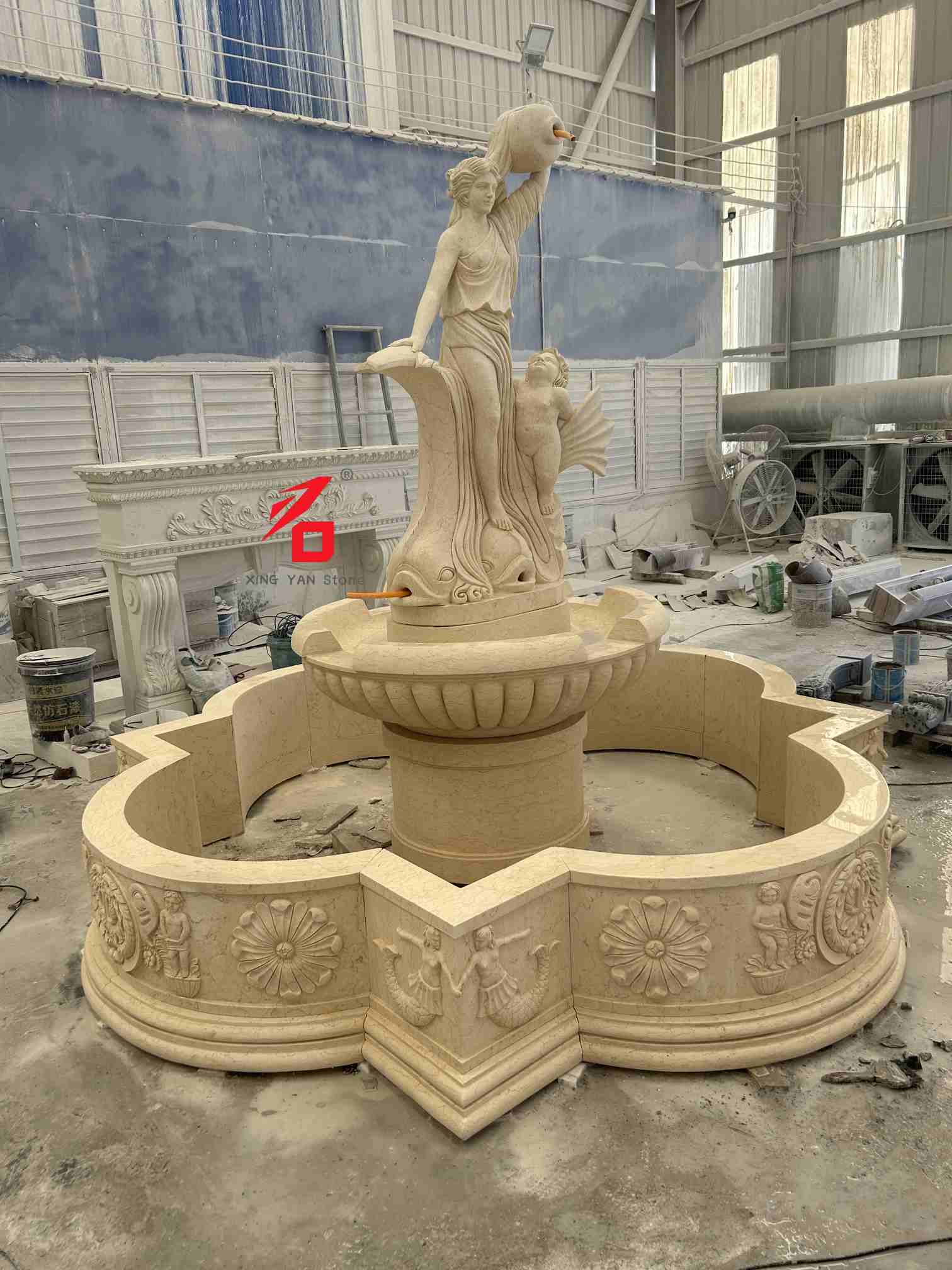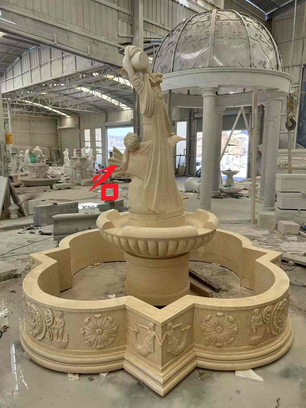 석재 옵션: 맞춤형 석재 옵션에는 베이지색 대리석, 흰색 대리석, 사암 및 기타 자연석이 포함됩니다. 돌의 고운 질감, 따뜻한 색상, 강한 내후성은 장기간 야외 사용 시 분수의 내구성과 미적 매력을 보장합니다. 조각 장인정신: 경험이 풍부한 조각가들이 전통적인 손조각 기술을 활용하여 여신의 표정과 옷자락, 아이와 물고기 모양의 장식품에 이르기까지 모든 세부 사항을 꼼꼼하게 제작하여 유럽 고전 조각의 예술적 질감과 입체성을 보여줍니다.